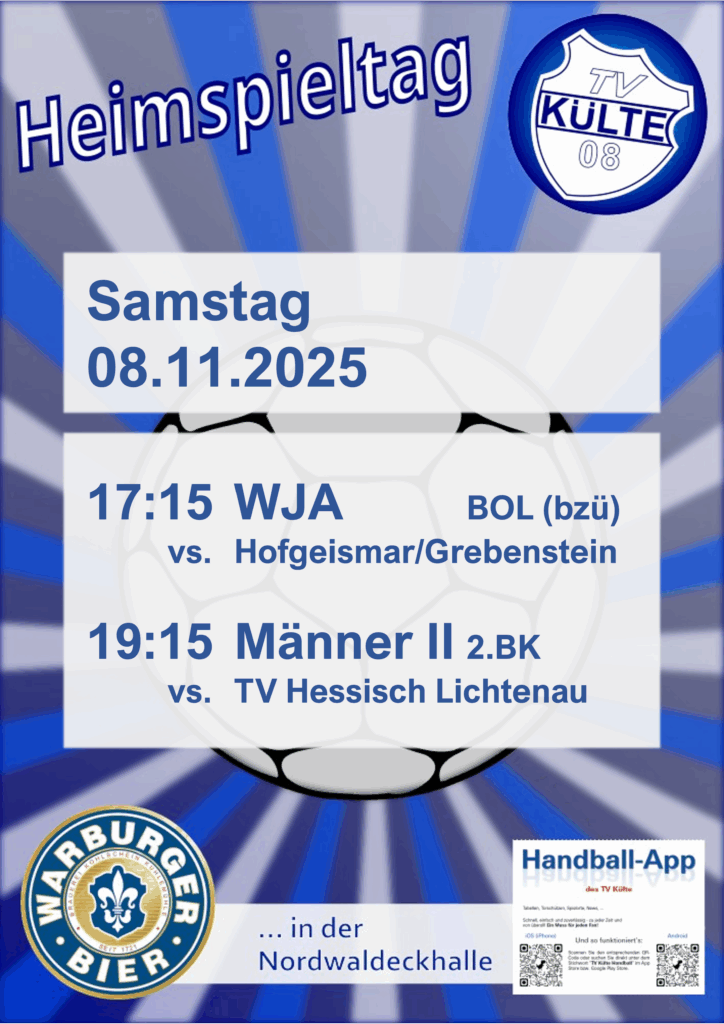 Um 19:15 Uhr bittet das Perspektivteam der Külter Männer den TV 1894 Hessisch Lichtenau zum Tanz auf die Platte. Nach dem überzeugenden Derbysieg in Mühlhausen in der Vorwoche kann das Ziel nur ein Sieg für den besten Angriff der 2. Bezirksklasse sein. Ihr schafft das, Jungs! Zum Auswärtsspiel am Samstag der männlichen Jugend A geht es zur TG Rotenburg. Siehe Anhang. Euch viel Spaß und Erfolg!
