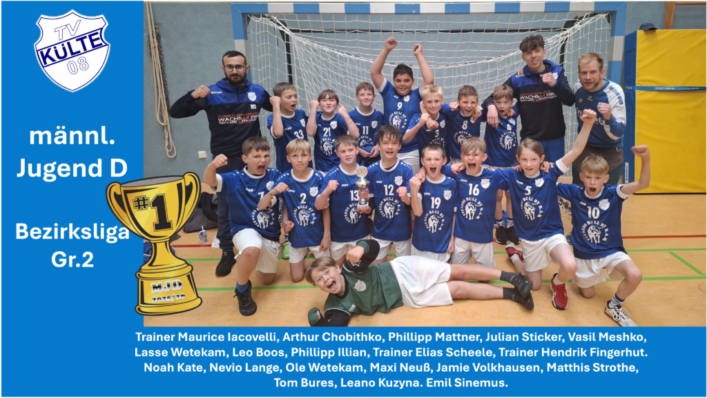 Mit einer Bilanz von 28:2 Punkten hat sich die männliche D-Jugend des TV Külte am Sonntag, den 15.03.2026, im Derby gegen Bad Wildungen verdient die Meisterschaft gesichert. In einem emotionalen und umkämpften Spiel zeigte die Mannschaft von Beginn an noch einmal all das, was sie über die gesamte Saison hinweg ausgezeichnet hat: Teamgeist, Spielfreude, Leidenschaft und eine bemerkenswerte Geschlossenheit auf und neben dem Platz.
